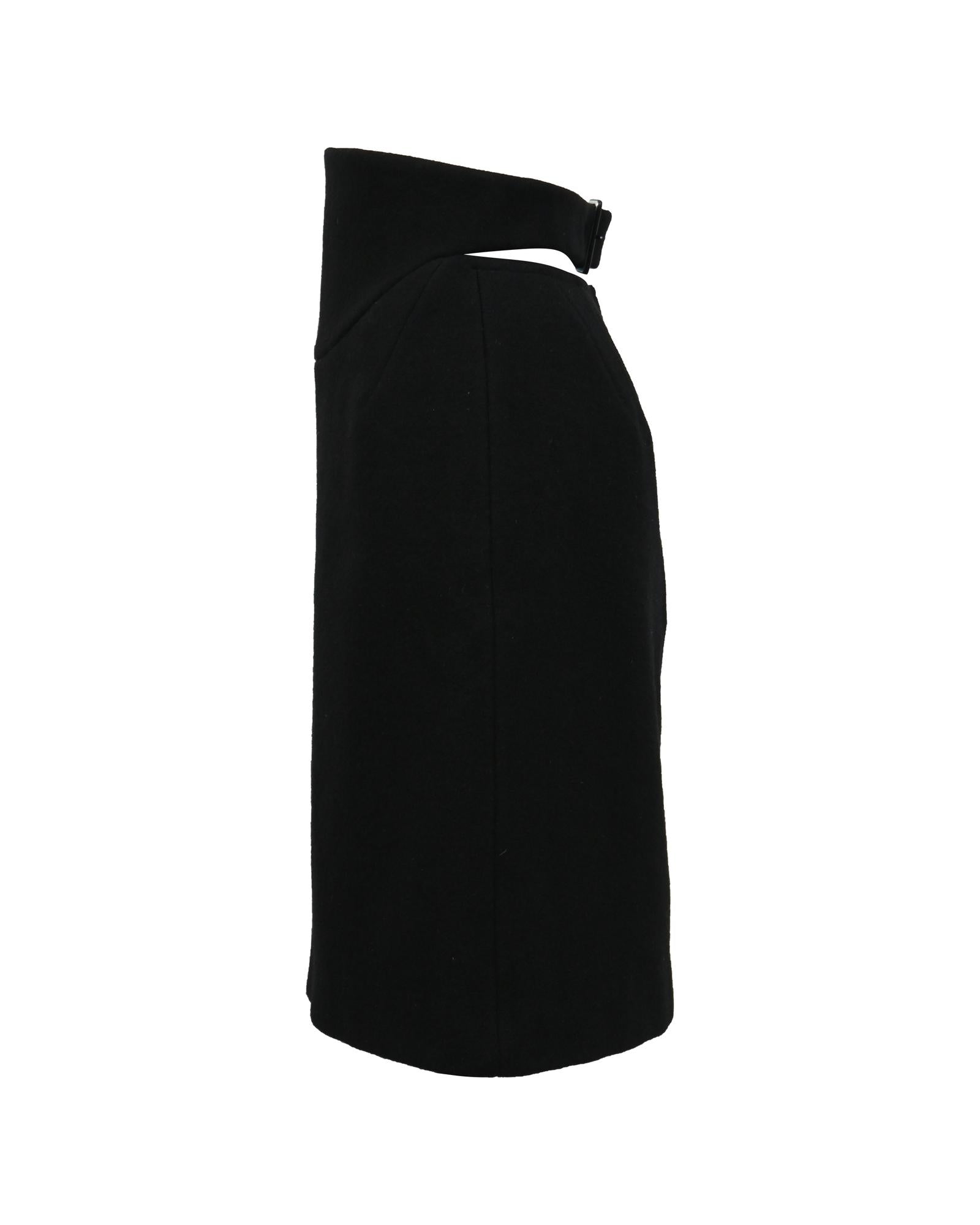 - Alaia Belt Cutout Pencil Skirt in Black Wool